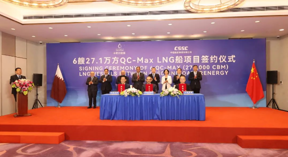 9月9日,三方新签了6艘全球最大27.1万立方米超大型LNG船订单。至此,三方已累计签订24艘27.1万立方米超大型LNG船、12艘17.4万立方米大型LNG船,以载气量计,位居全球各船厂之首。卡塔尔能源事务国务大臣、卡塔尔能源总裁兼首席执行官萨阿德·谢里达·阿尔卡比,上海市副市长陈杰,中国船舶集团党组成员、总会计师贾海英等出席签约仪式。