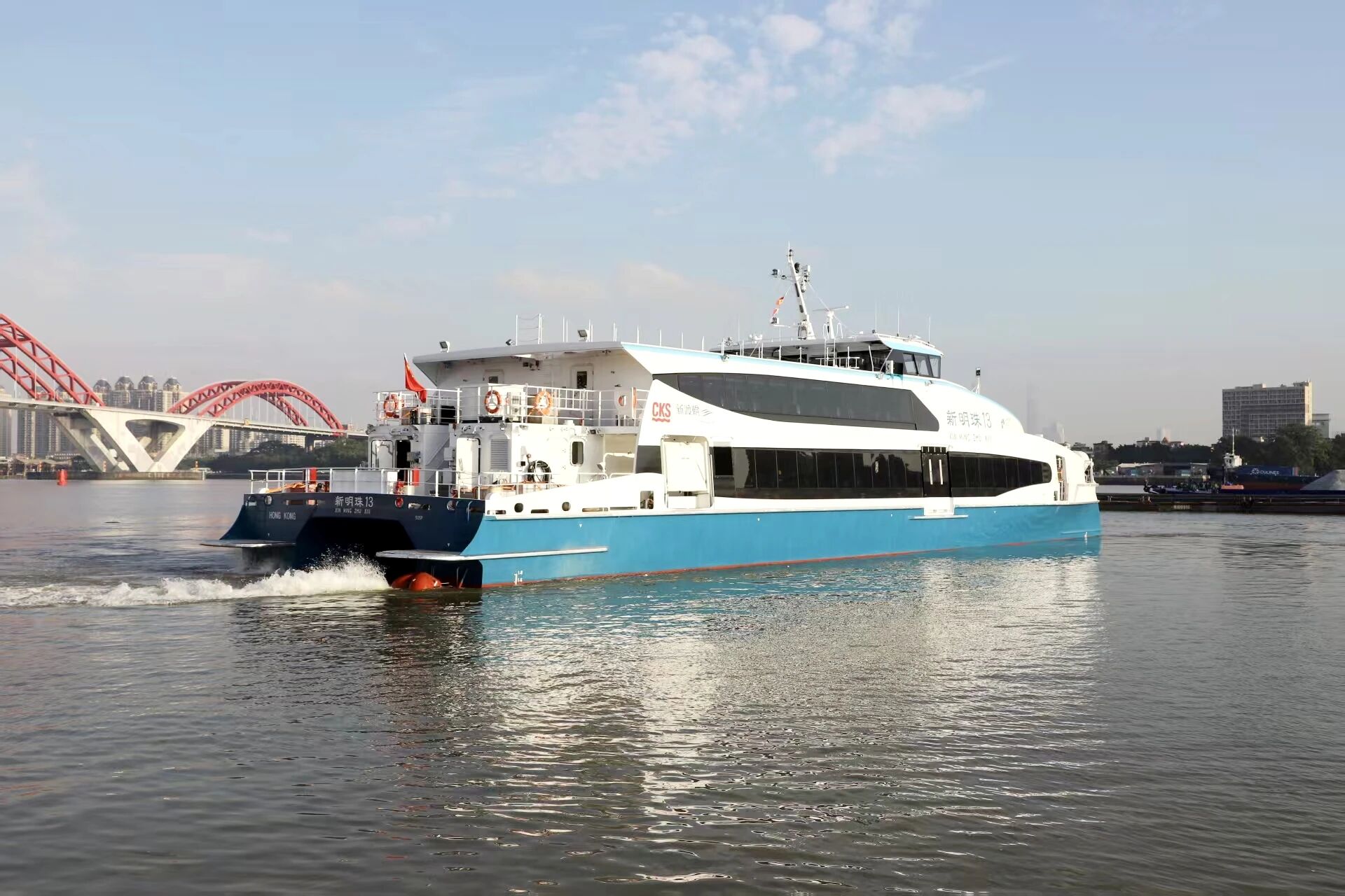11月10日,中国香港新渡轮离岛项目最后一艘“新明珠13”号500客位铝合金高速客渡船在广州番禺举行完工送船仪式,标志着该项目圆满收官。